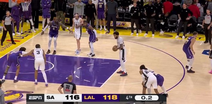 最终全场竞赛终结,湖人118-116险胜马刺。