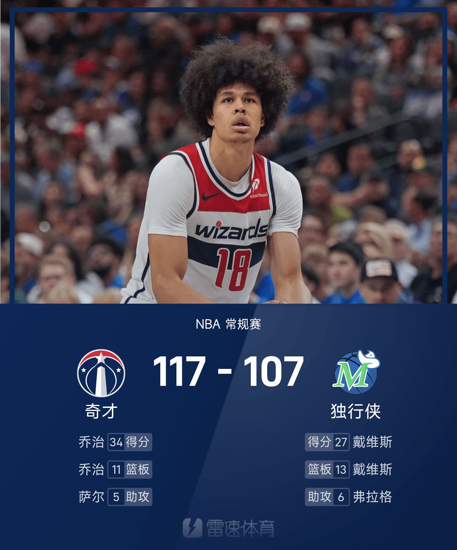 NBA战报:乔治34分11板,奇才117-107击败独行侠