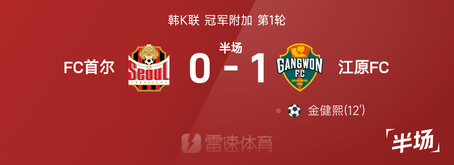 韩K联半场:金健熙扫射破门,江原暂时1-0首尔