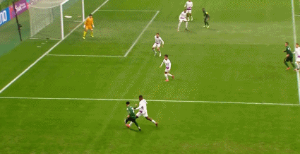 50’古加主罚边线球直接打门,随后插上再射稍稍高出目标