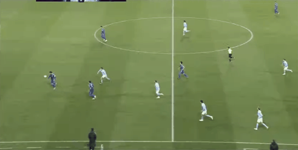这位球员的盘带给对手后防制造麻烦