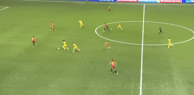 17’奥纳纳三秒区外起脚外围射门,皮球直接飞上看台