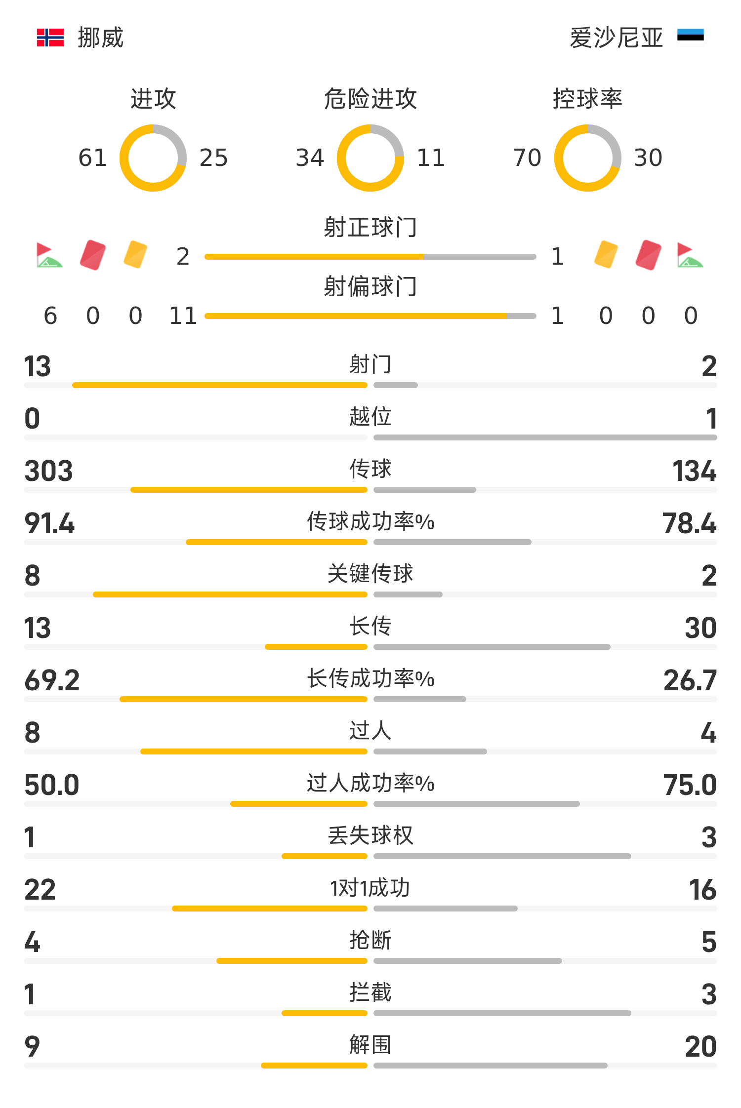 世欧预半场:海因救险,挪威狂轰13脚打门未果,暂0-0爱沙尼亚