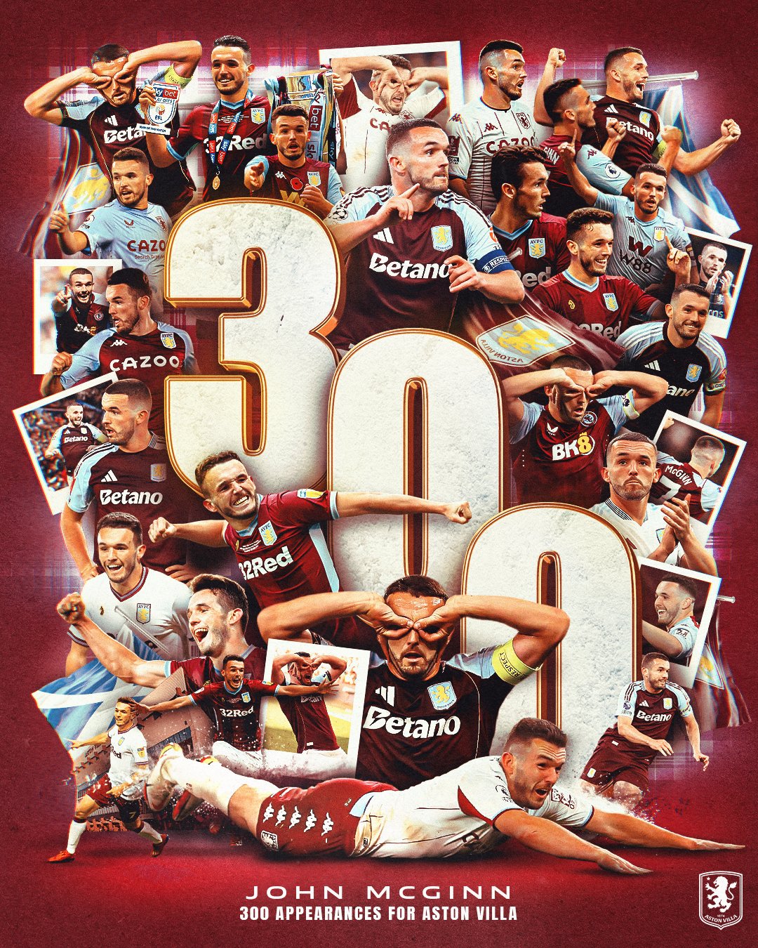 今日后备队员登场,麦金迎维拉生涯300场里程碑