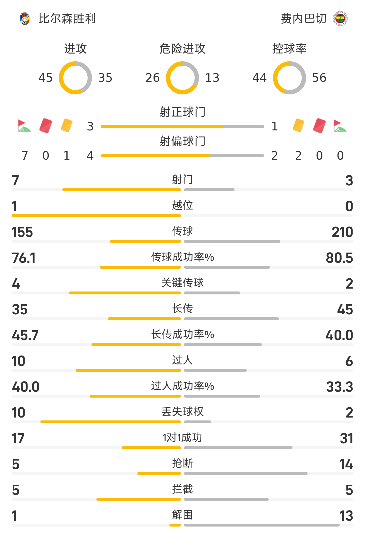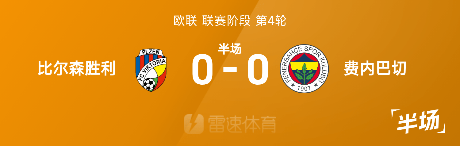 欧联半场:场上僵局暂未打破,比尔森胜出局0-0费内巴切
