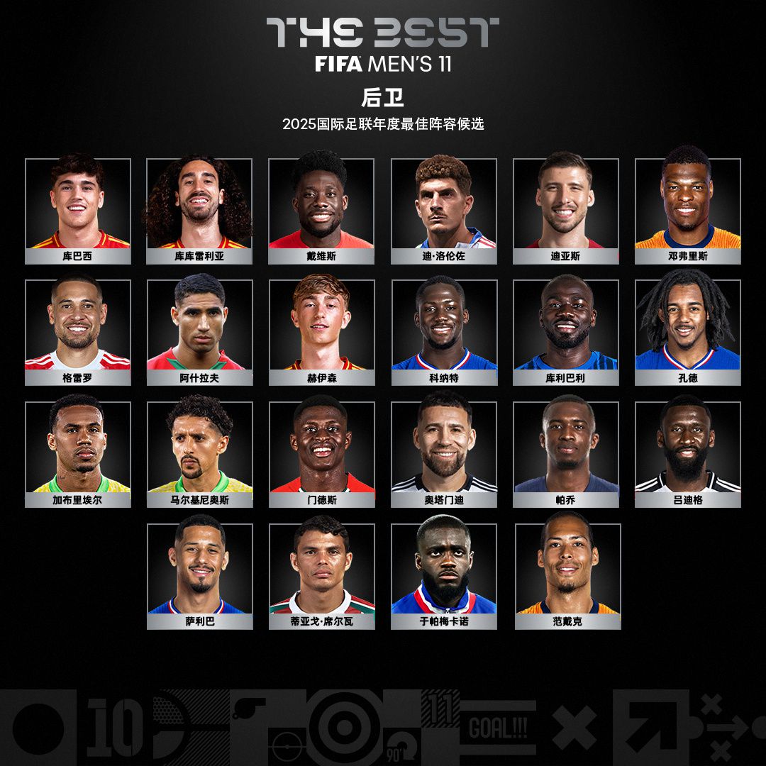 6686体育官网11月7日讯 国际足联通过官网公布2025年度最佳评选的各奖项候选名单,并向全球球迷开启投票。接下来,我们和各位老哥通过本文共同回顾已经公布的各奖项候选名单。