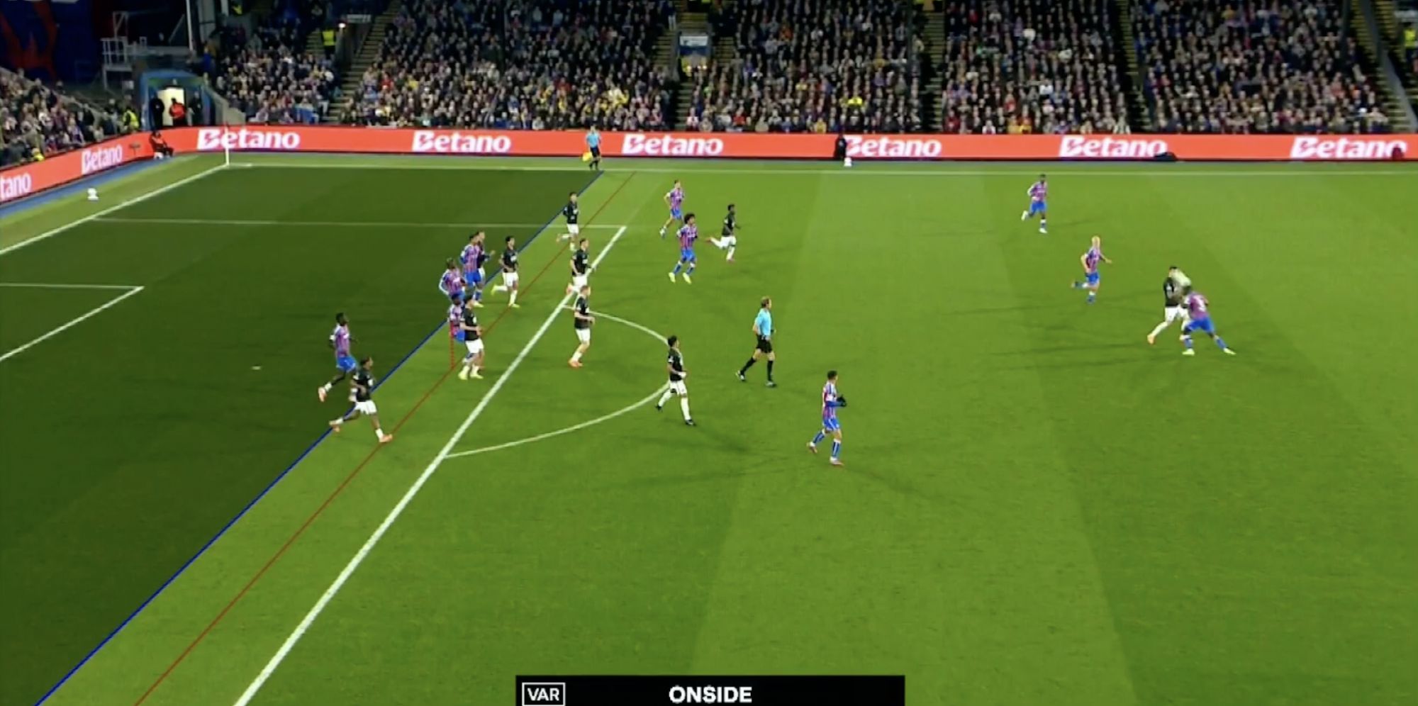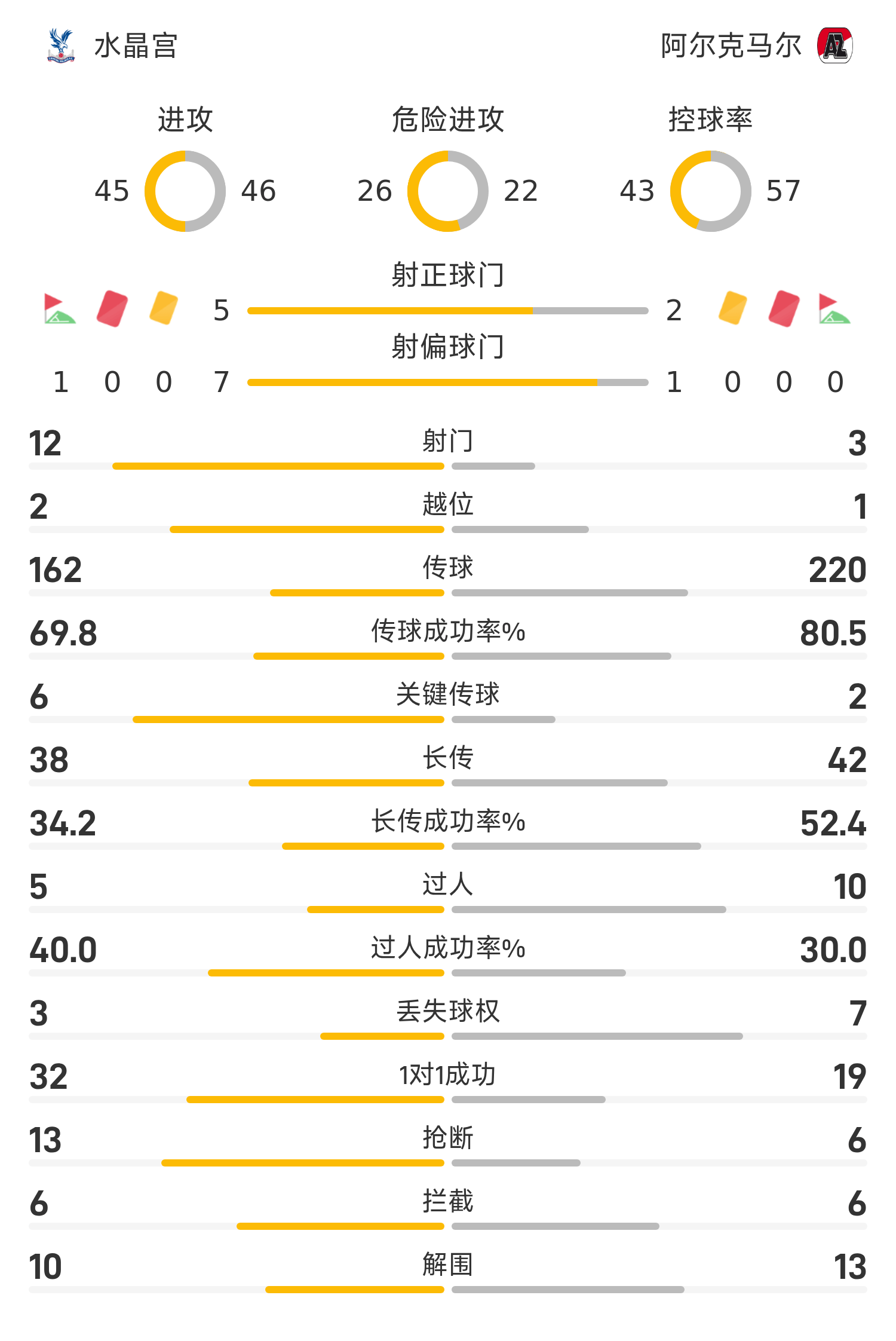 水晶宫首发阵容:1-亨德森、6-格伊、5-拉克鲁瓦、26-理查兹、19-休斯、8-莱尔马、7-萨尔、2-穆尼奥斯、3-米切尔、10-皮诺、14-马特塔