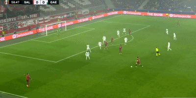 51’萨尔茨堡前场紧逼得球后迅速反击,维特森抢点推远角击中边网